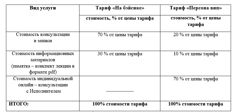 Тариф – набор услуг, входящих в стоимость консультационной программы, размещенных в Приложении 1 к настоящему договору.